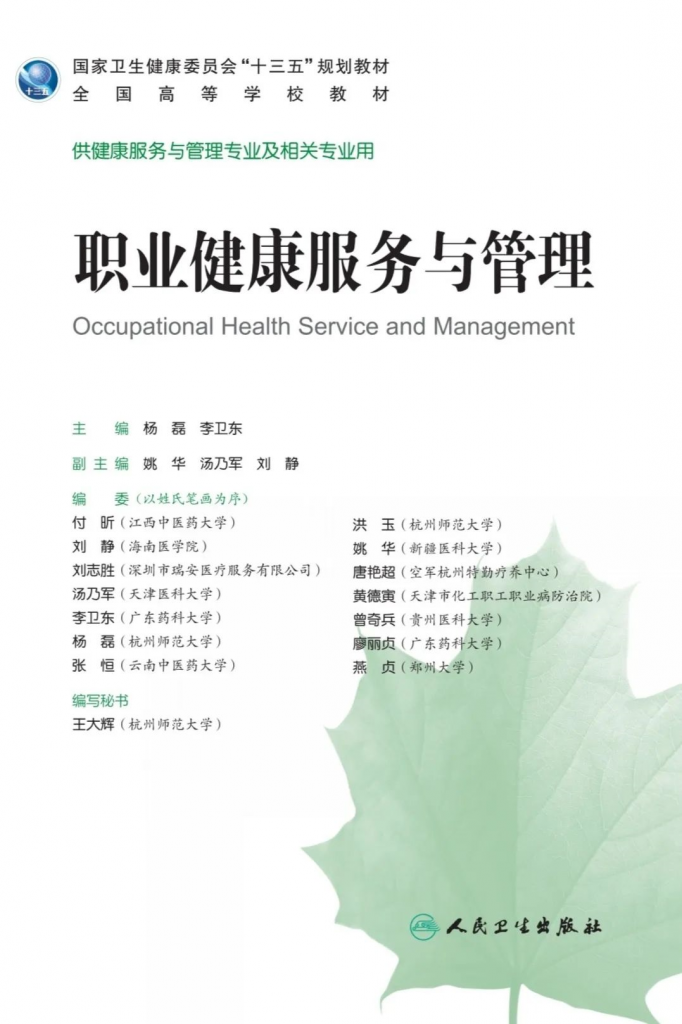 2019年由全国爱卫办、国家卫生健康委、全国总工会等多部门联合印发了《关于推进健康企业建设的通知》和《健康企业建设示范规范(试行)》 ,旨在号召全国企业全方位、全周期保障劳动者的身心健康,也进一步明确指出职场健康在“健康中国战略”中的重要位置。而《职业健康服务与管理》作为国家卫健委“十三五”规划教材、全国高等学校教材之一,在整个“健康服务与管理”学科专业体系中也是研究的重点所在。