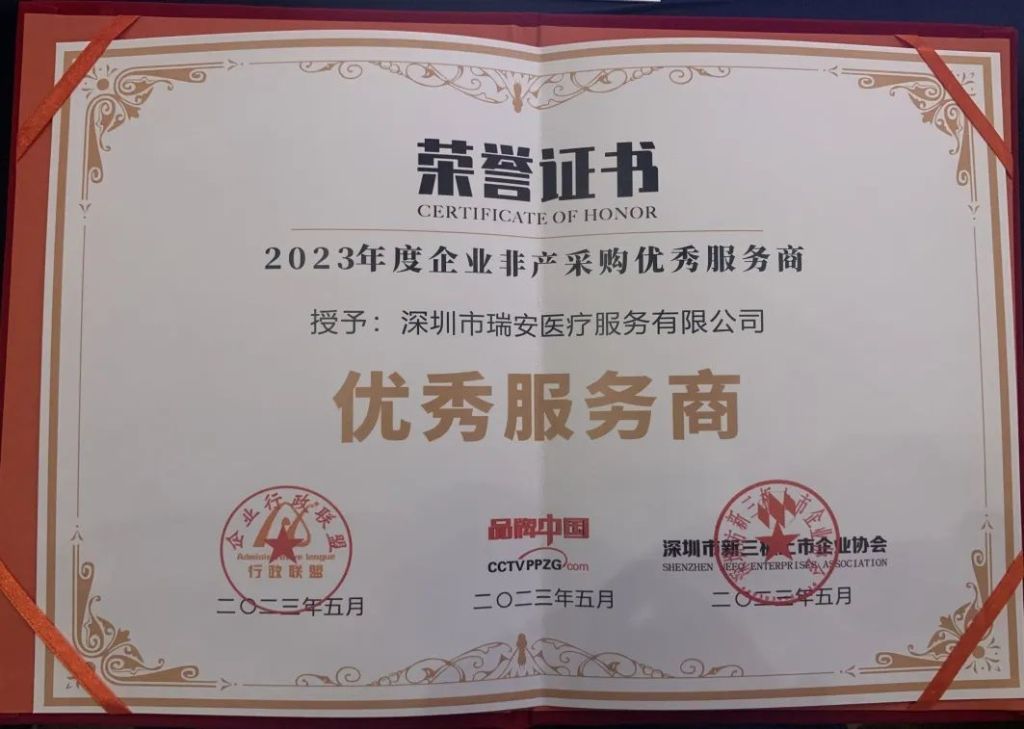 瑞安医疗十分荣幸荣获本次大会的“企业非产采购优秀服务商”奖项,感谢行业与社会对于瑞安医疗多年不懈创新与高速发展的重要认可。瑞安医疗自创立以来,一直聚焦于职场医疗健康服务领域,始终致力于为广大企事业单位构建一整套完善的创新型职场医疗与健康服务保障体系。瑞安医疗在日益发展的企业职场健康服务浪潮中,十分愿意贡献出自己的一份力量,以期能够持续助力“健康企业建设”伟大战略的稳健加速发展,为广大企业员工的生命与健康保驾护航!